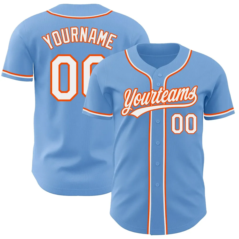 Custom Light Blue White-Orange Authentic Baseball Jersey