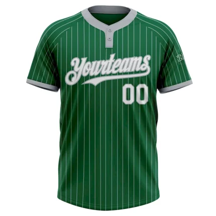 Custom Kelly Green Gray Pinstripe White Two-Button Unisex Softball Jersey