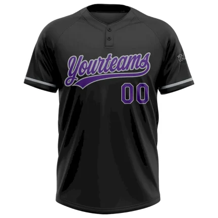 Custom Black Purple-Gray Two-Button Unisex Softball Jersey