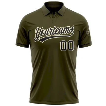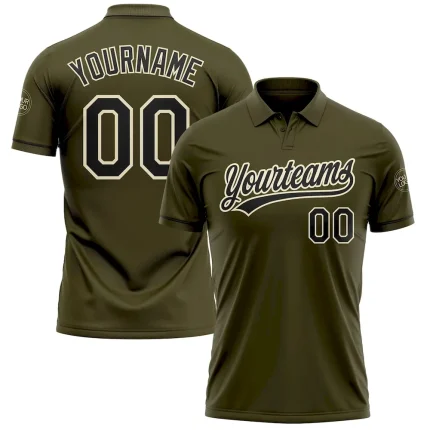 Custom Olive Black-Cream Performance Vapor Salute To Service Golf Polo Shirt