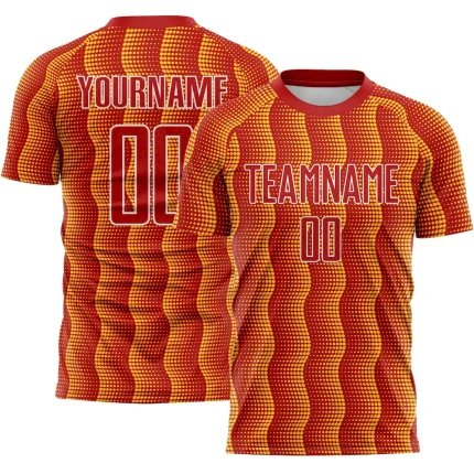 Custom Red Yellow-White Geometric Shape Sublimation Soccer Uniform Jersey