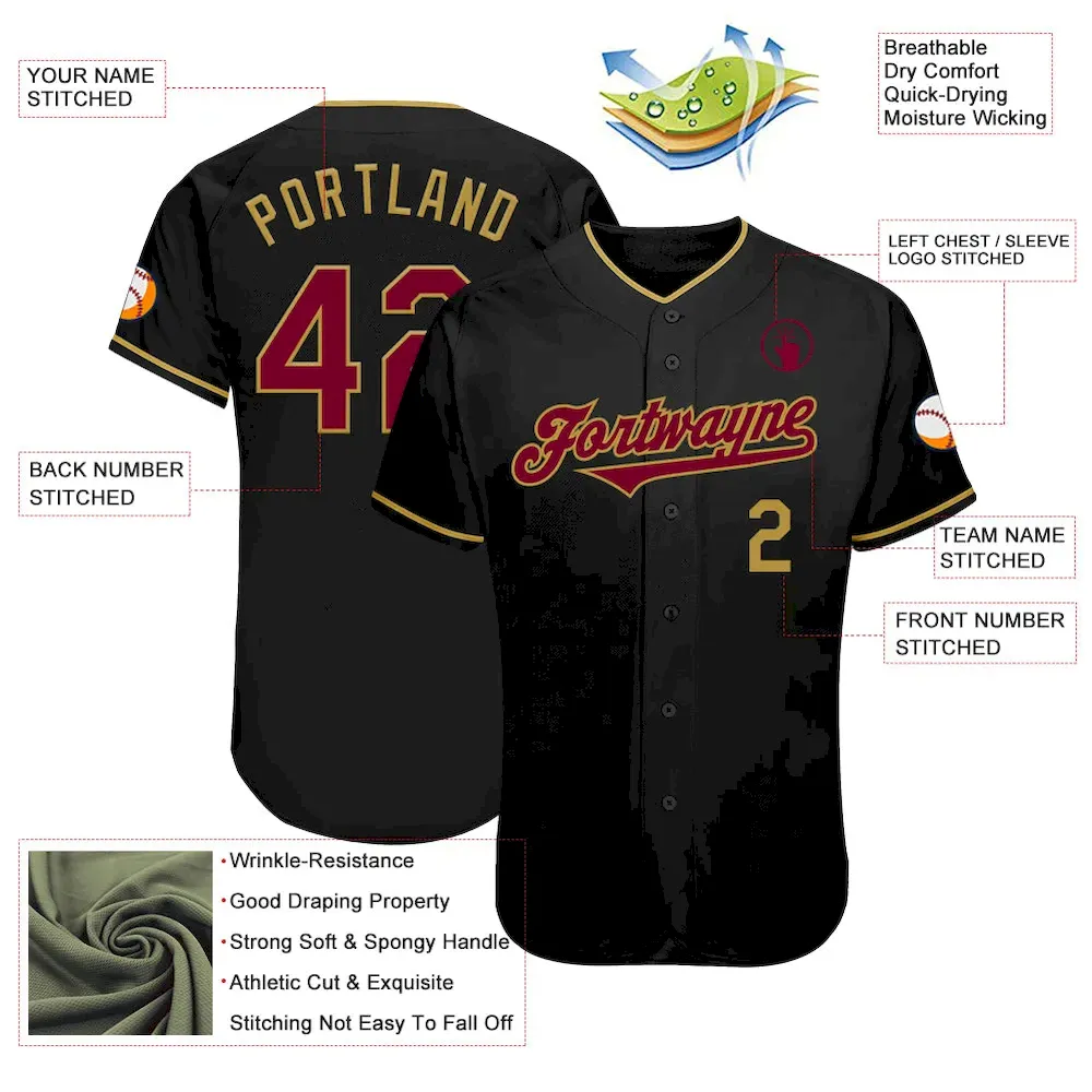 Custom Black Maroon-Old Gold Authentic Baseball Jersey