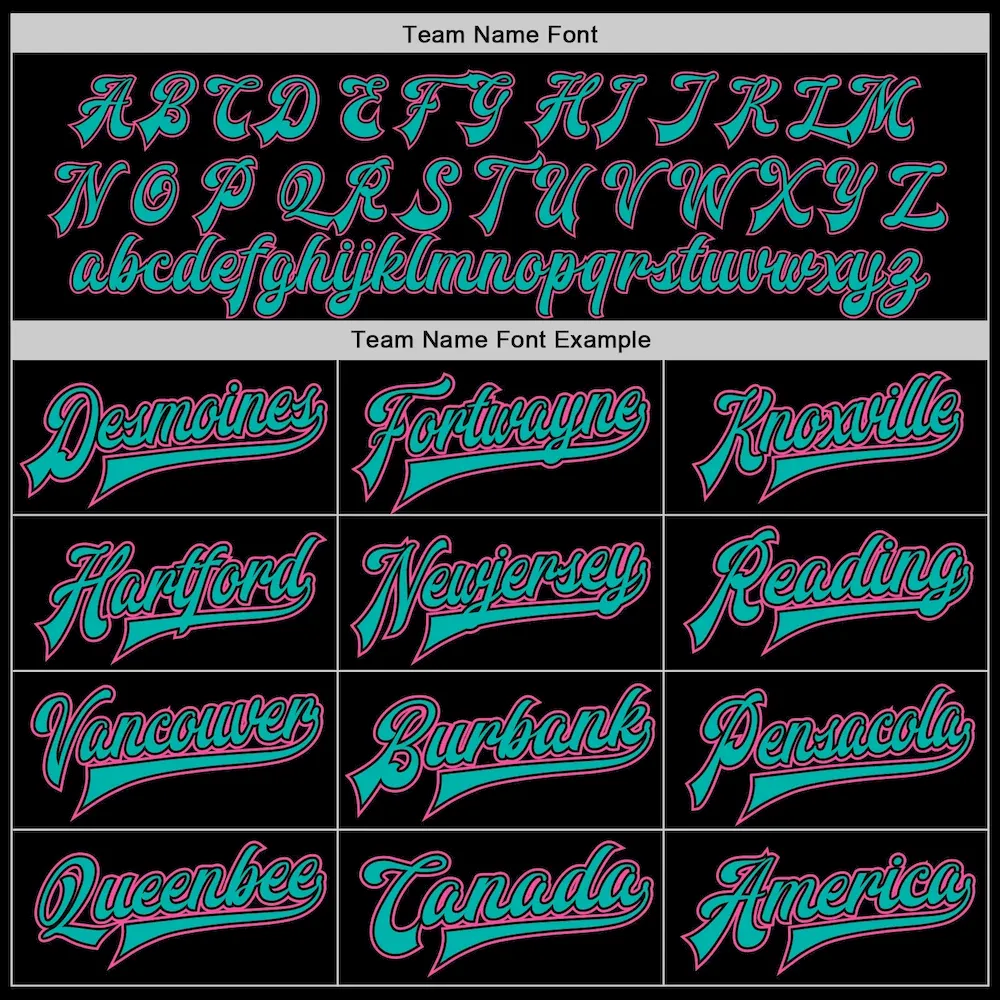 Custom Black Pink-Aqua Bomber Full-Snap Varsity Letterman Two Tone Jacket