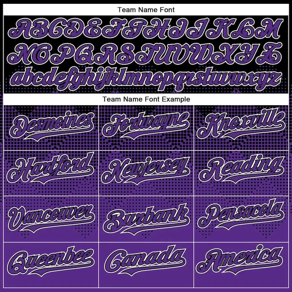 Custom Black Purple-White Gradient Square Shape 3D Pattern Design Bomber Full-Snap Varsity Letterman Hoodie Jacket