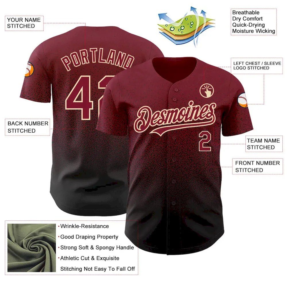 Custom Crimson Black-Cream Authentic Fade Fashion Baseball Jersey