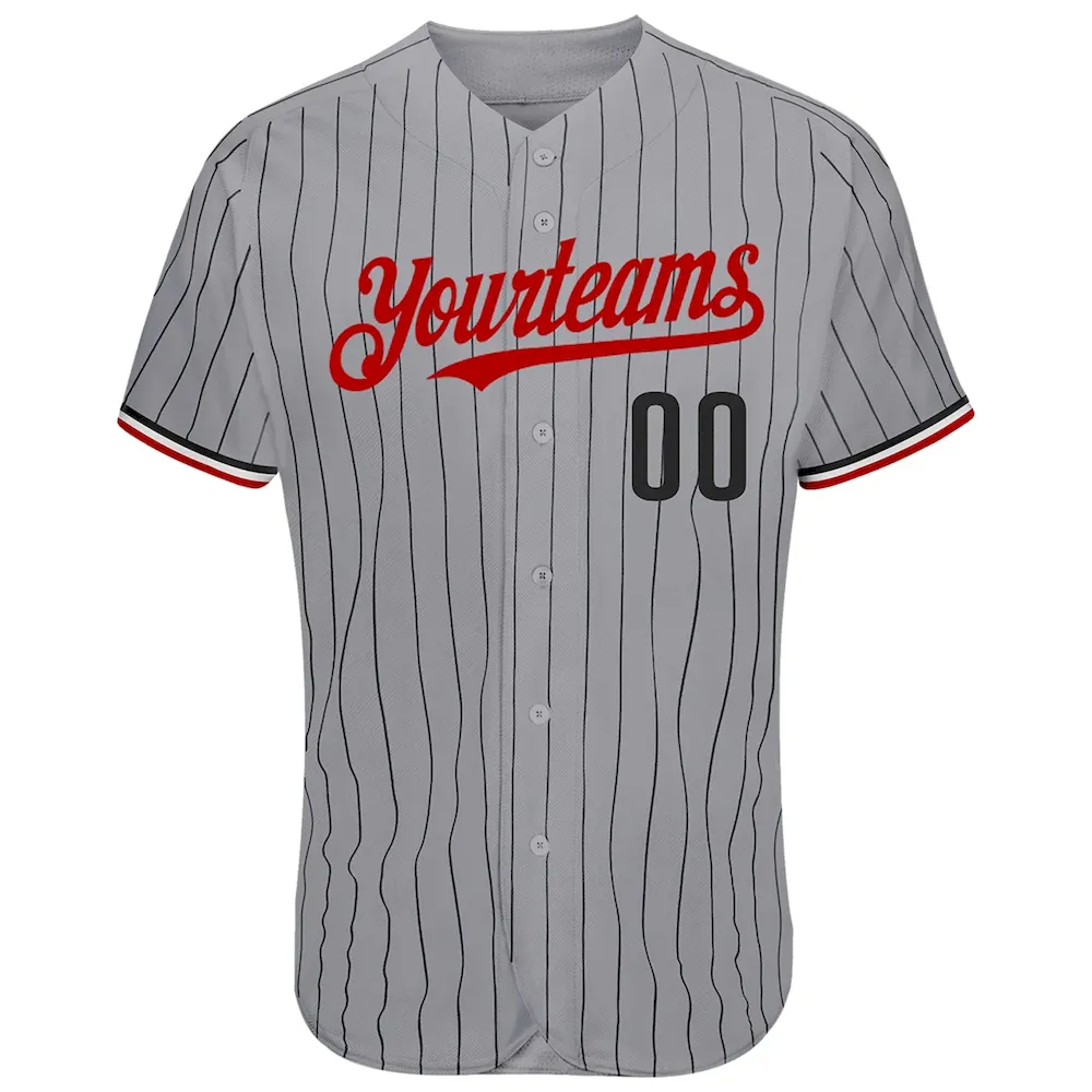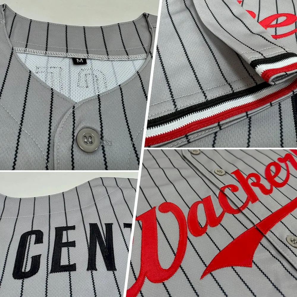 Custom Gray Black Pinstripe Red-White Authentic Baseball Jersey