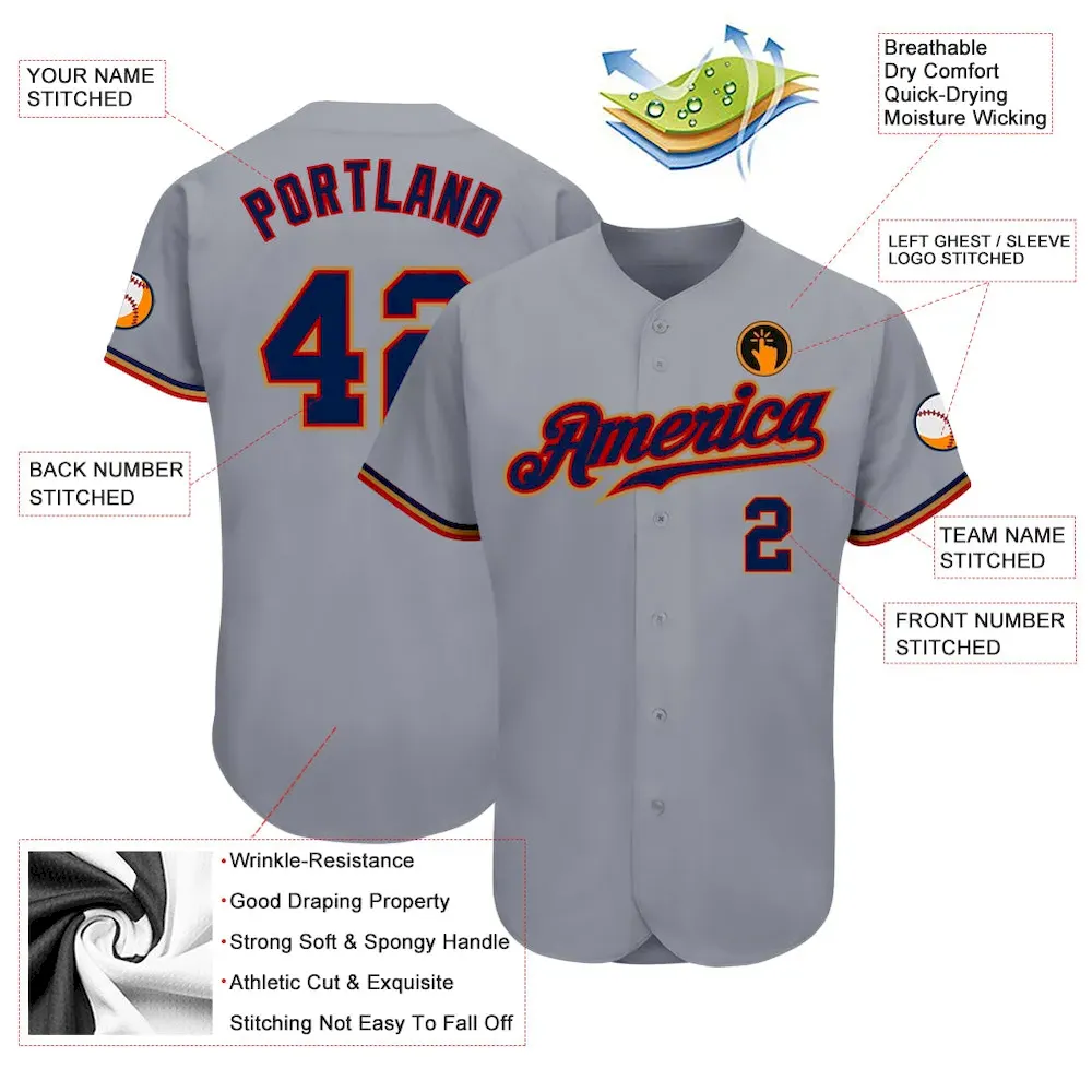 Custom Gray Navy Red-Old Gold Authentic Baseball Jersey