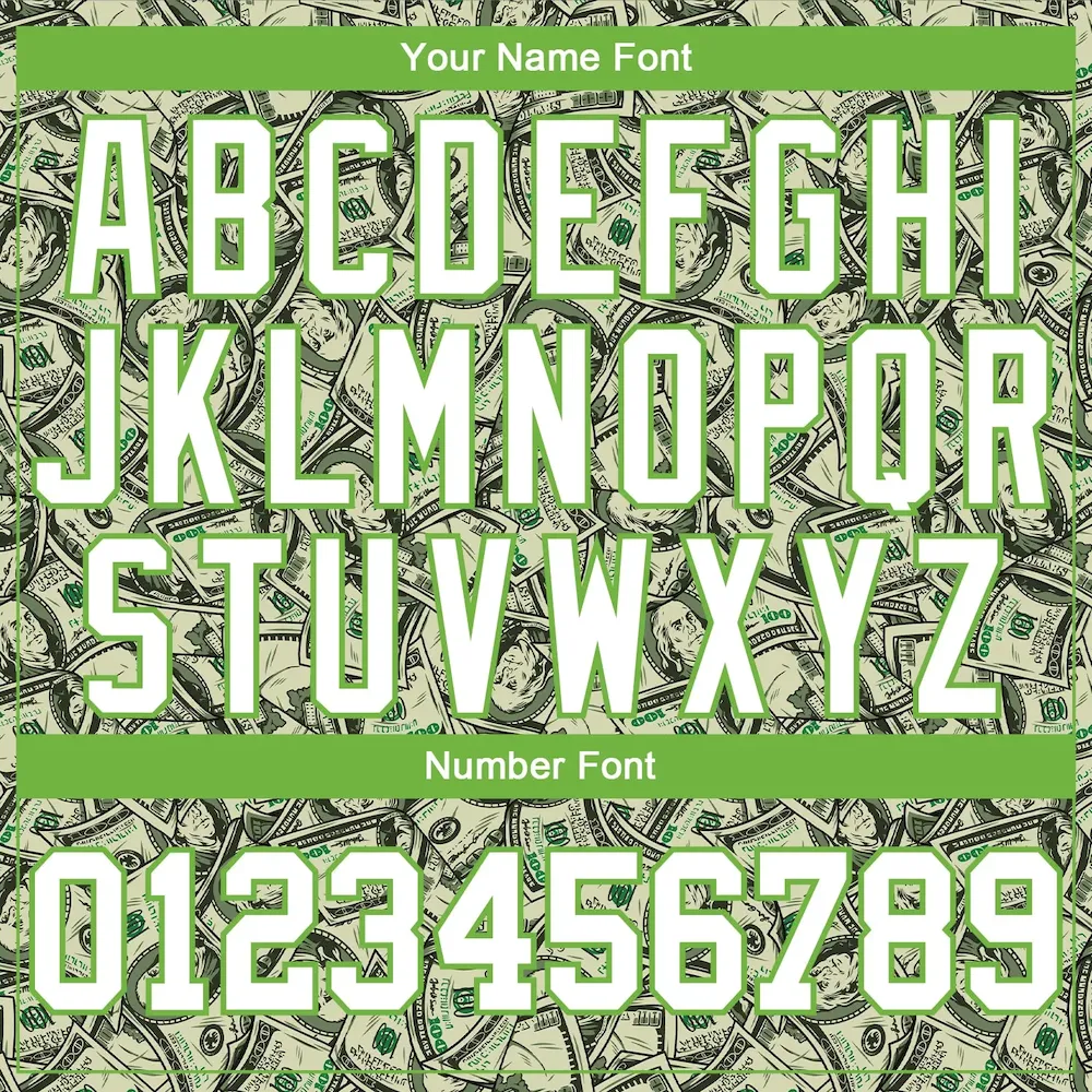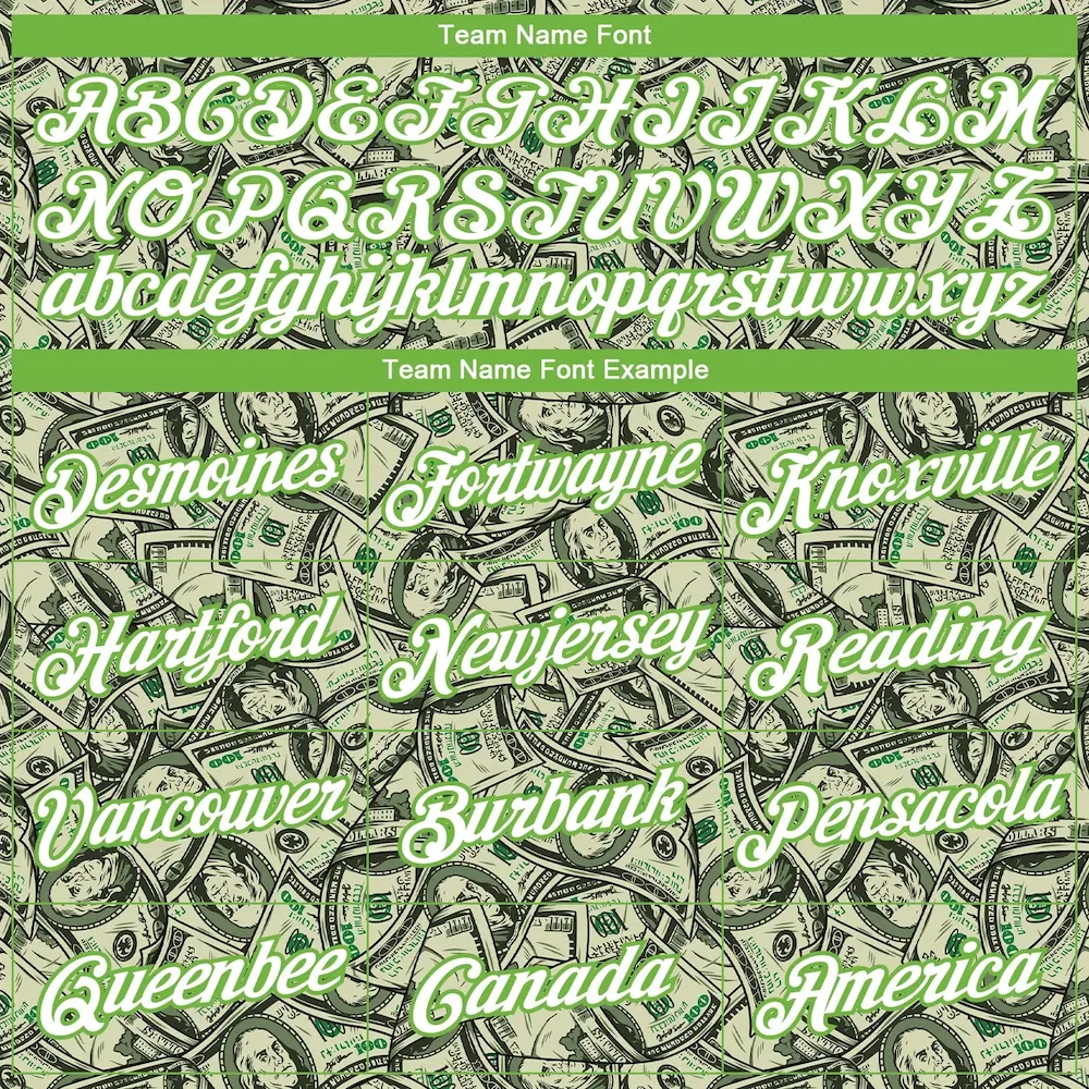 Custom Green White-Neon Green Dollar 3D Pattern Long Sleeve Performance T-Shirt