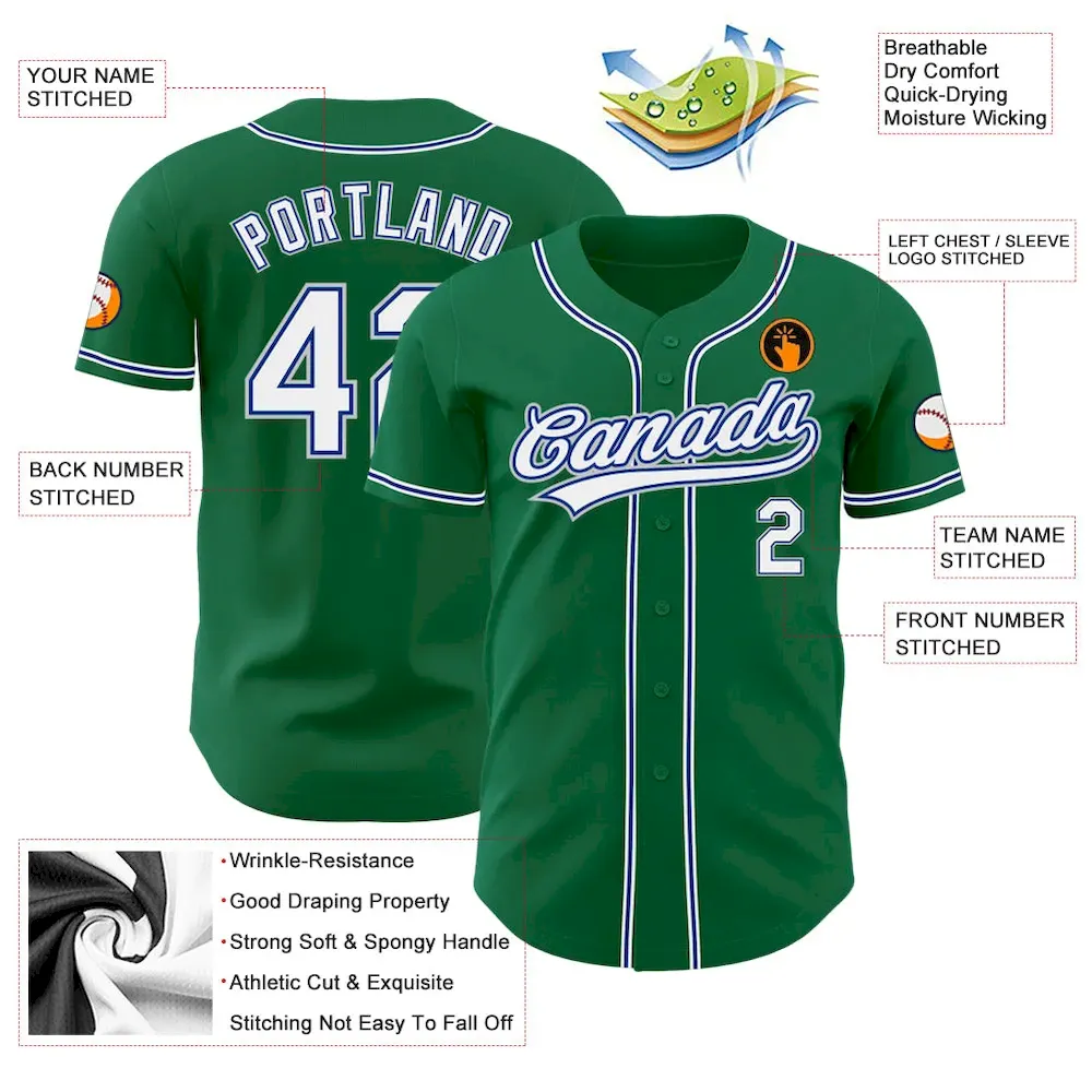 Custom Kelly Green White Royal-Gray Authentic Baseball Jersey