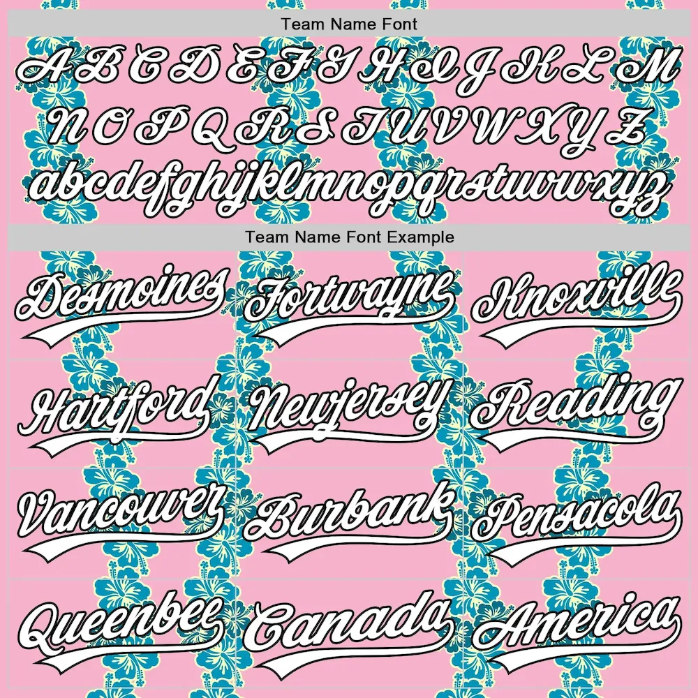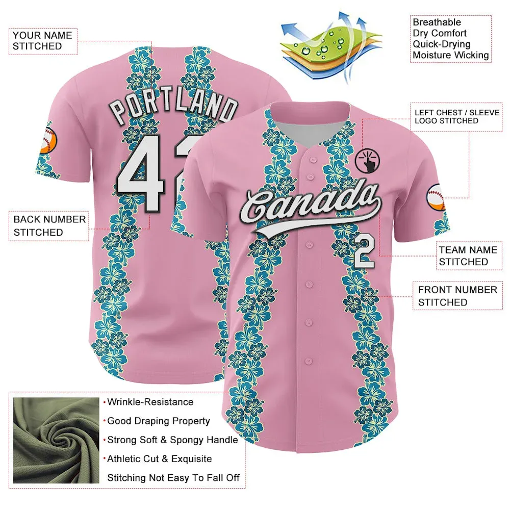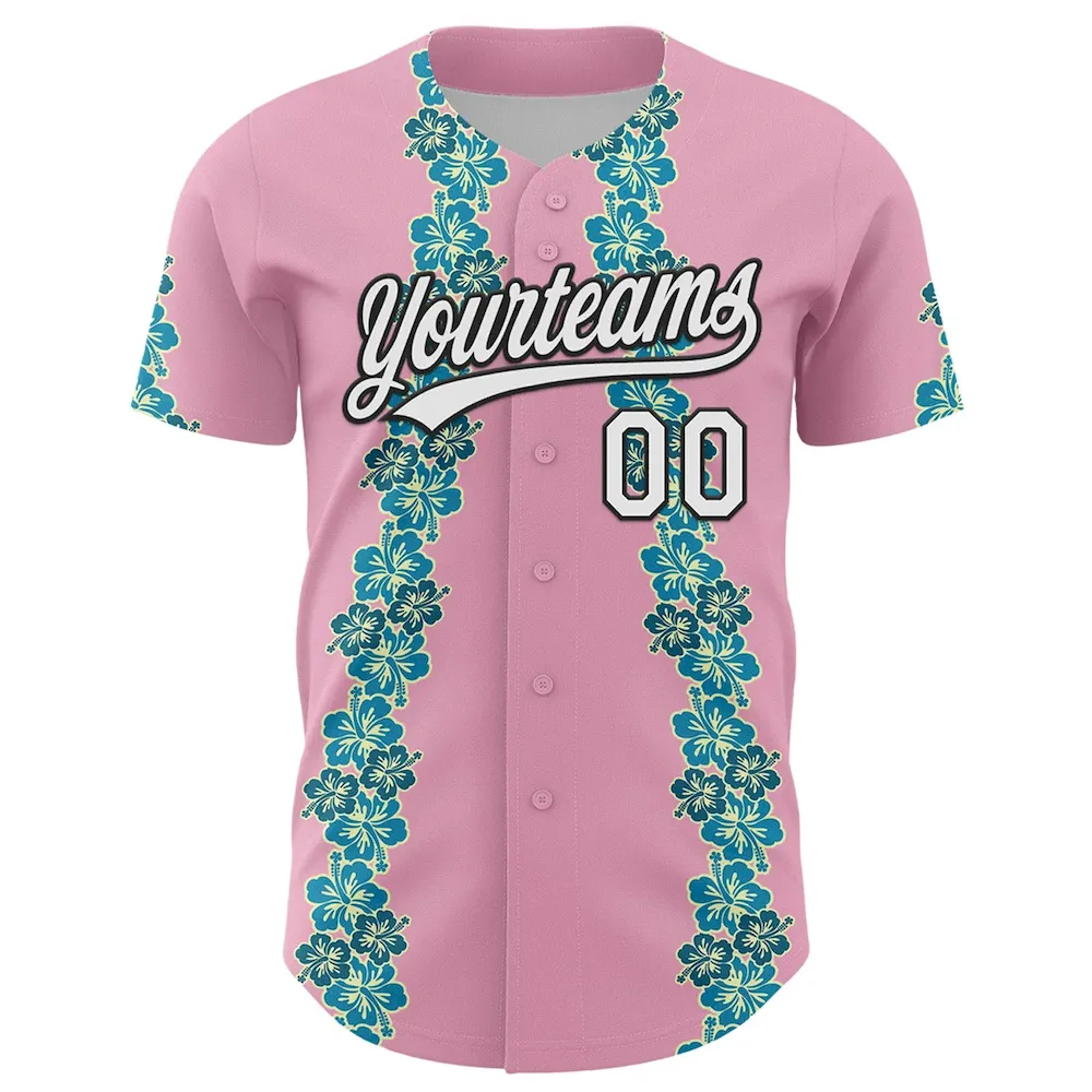 Custom Light Pink White-Black 3D Tropical Hawaii Flower Authentic Baseball Jersey