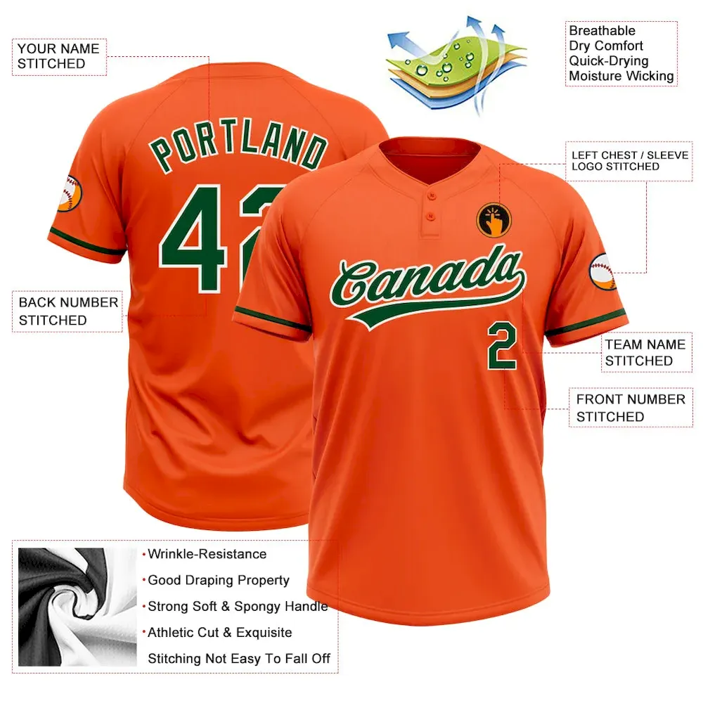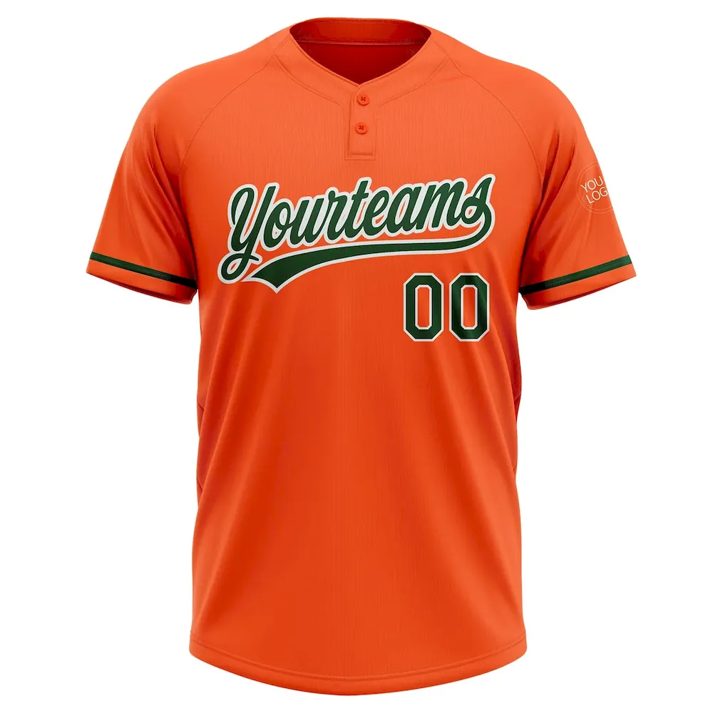 Custom Orange Green-White Two-Button Unisex Softball Jersey