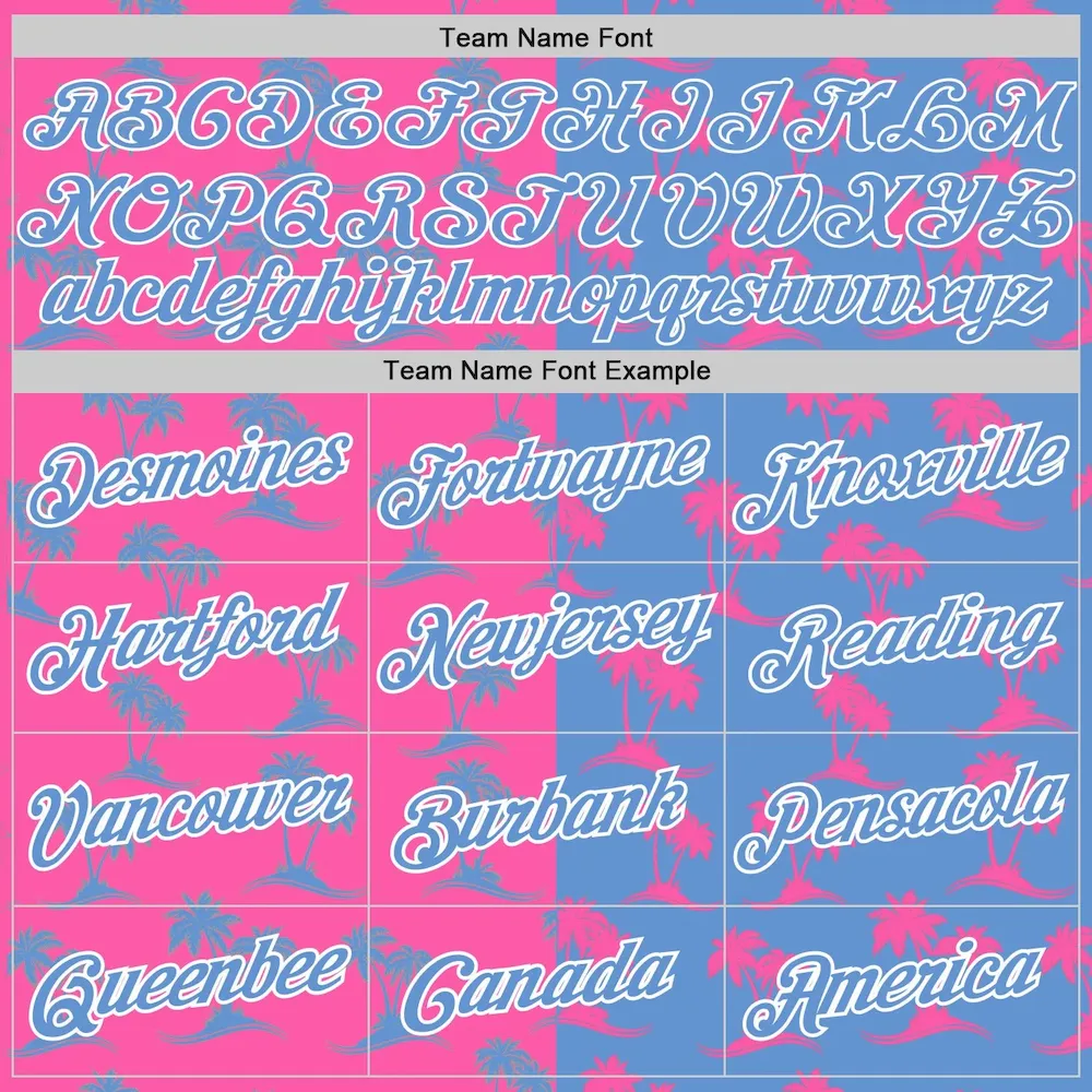 Custom Pink Light Blue-White 3D Pattern Hawaii Palm Trees Authentic Basketball Jersey