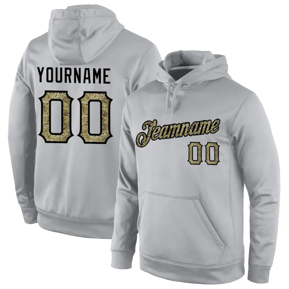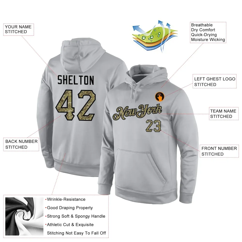 Custom Stitched Gray Camo-Black Sports Pullover Sweatshirt Hoodie