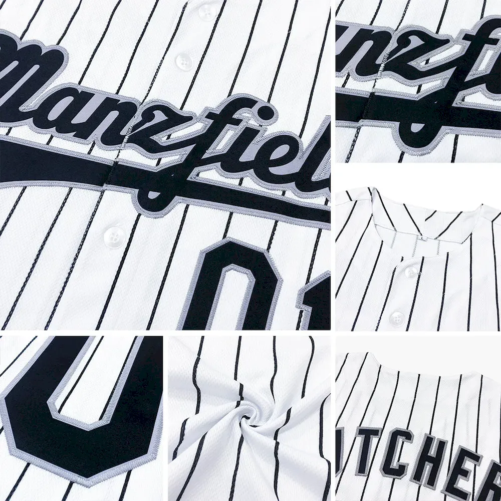 Custom White Navy Pinstripe Navy Authentic Baseball Jersey